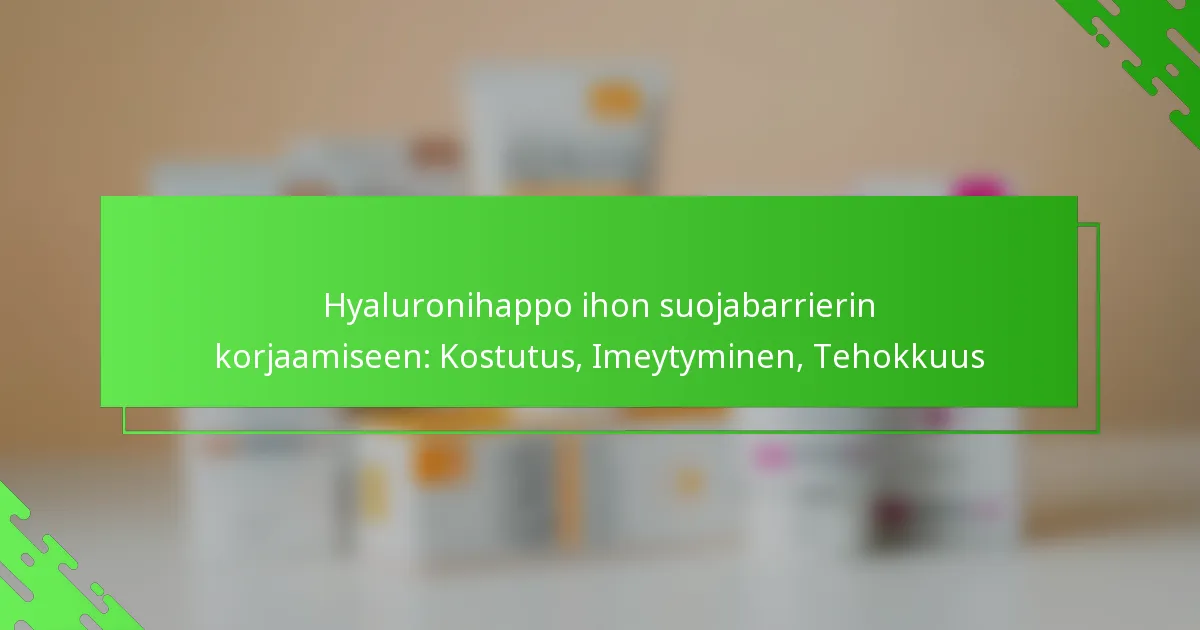 Hyaluronihapon sisällyttäminen ihonhoitorutiiniisi voi parantaa kosteutusta ja parantaa ihon esteen korjaamista. Tämä voimakas kosteuttaja vetää kosteutta ihoon, mikä tekee siitä tehokkaan ainesosan terveellisen ihon ylläpitämiseksi.