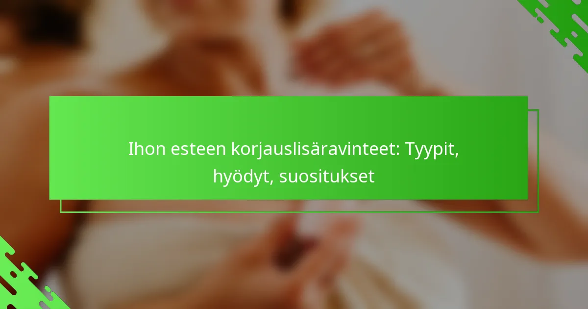 Ihon esteen korjauslisäravinteet ovat saatavilla eri muodoissa, joilla on omat etunsa. Yleisiä tyyppejä ovat: